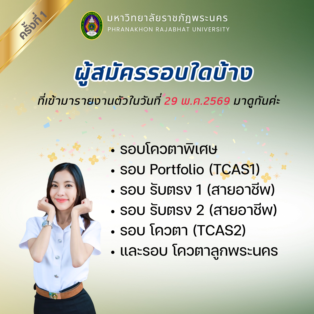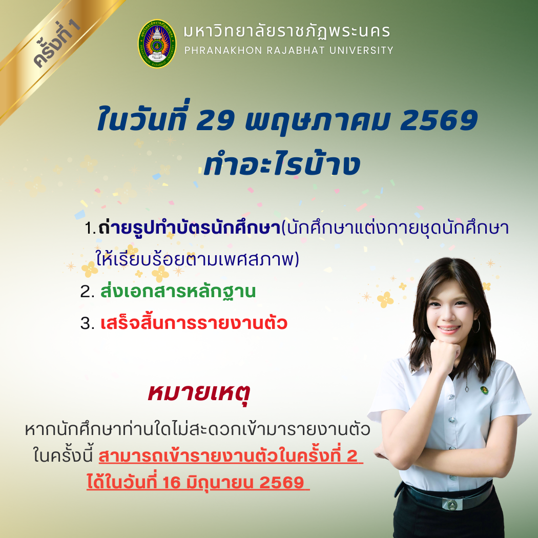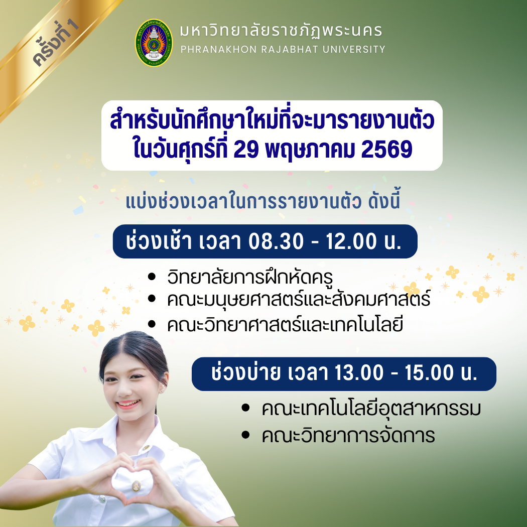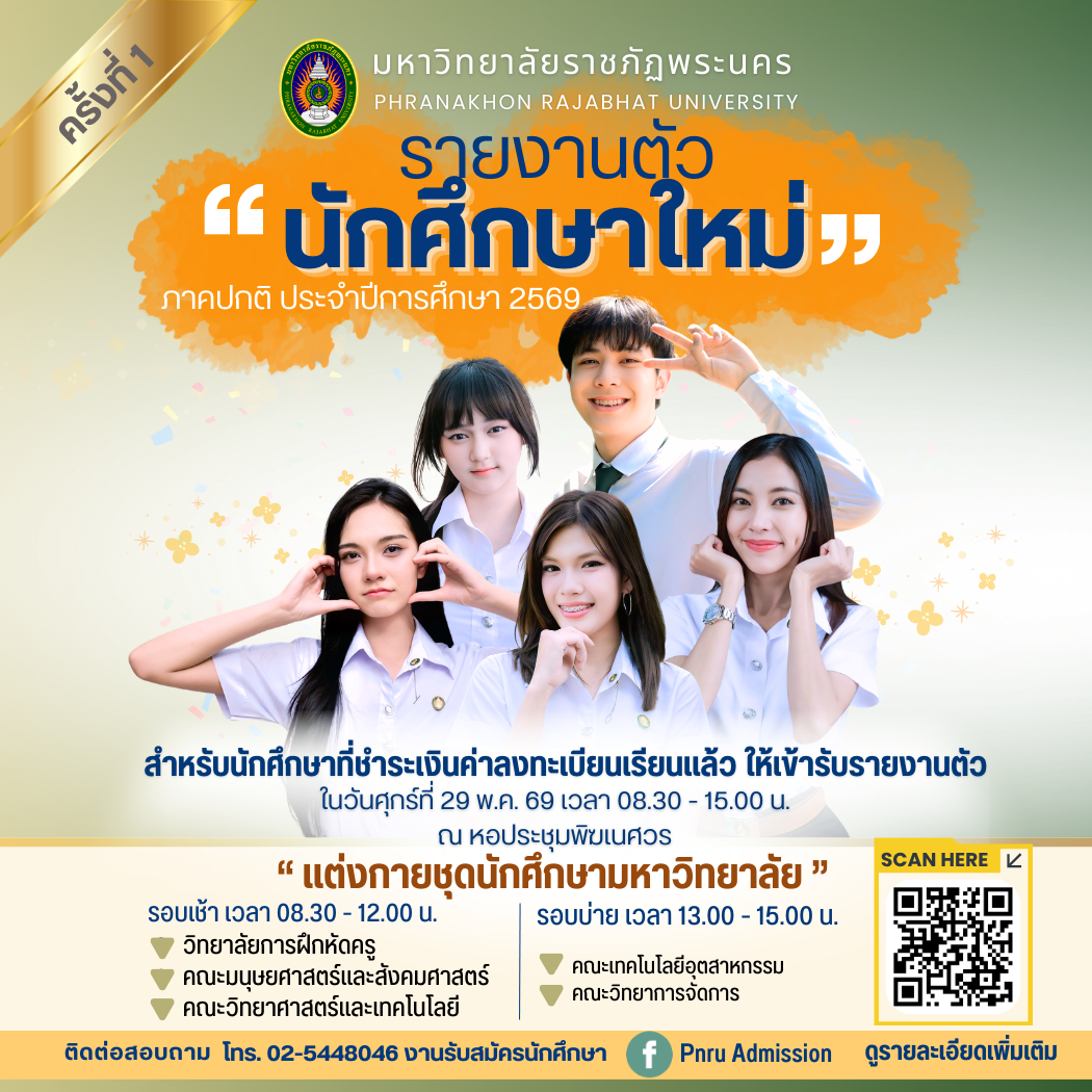 รายงานตัวนักศึกษาใหม่ ภาคปกติ ระดับปริญญาตรี ประจำปีการศึกษา 2569 (ครั้งที่ 1 )