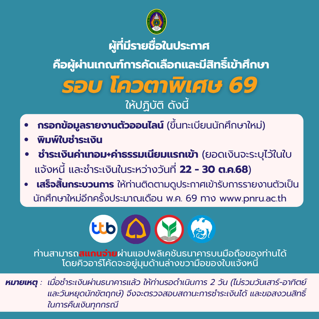 งานรับสมัครนักศึกษาและขึ้นทะเบียนนักศึกษา (Pnru Admission)