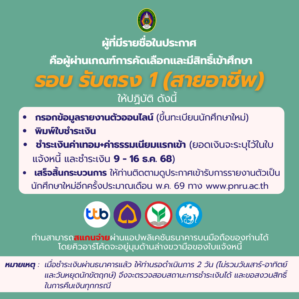 ประกาศรายชื่อผู้ผ่านเกณฑ์การคัดเลือกและมีสิทธิ์เข้าศึกษา รอบ รับตรง 1 (สายอาชีพ) ประจำปีการศึกษา 2569